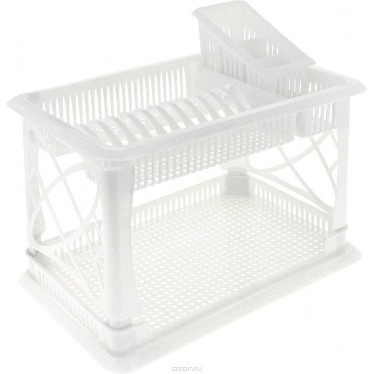 Сушилка для посуды с поддоном 2-х ярусная "Лилия" с сушилкой для столовых приборов мраморный
